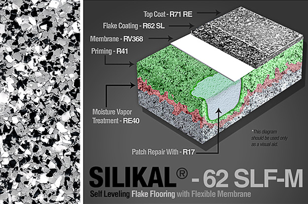The following information provides an overview of the components of the SILIKAL® 62 Self Leveling Flake flooring system.
