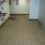 Deckade installers will check the current tile floor for strength and soundness, pulling any loose or damaged tiles and patching those areas in advance of applying Silikal primer. Also, prior to priming, the tile is diamond grinded to provide porosity.